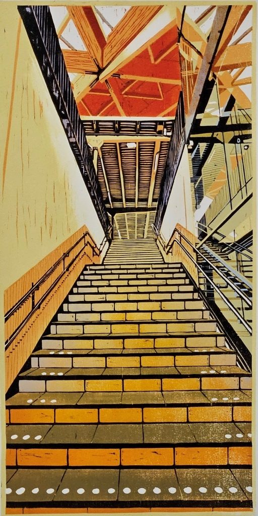 Project ‘Deuren in de binnenstad van Groningen’ Serie kleurenhhoutsnedes in de reductietechniek, voor eindexamen aan de Klassieke Academie in Groningen, 2025.